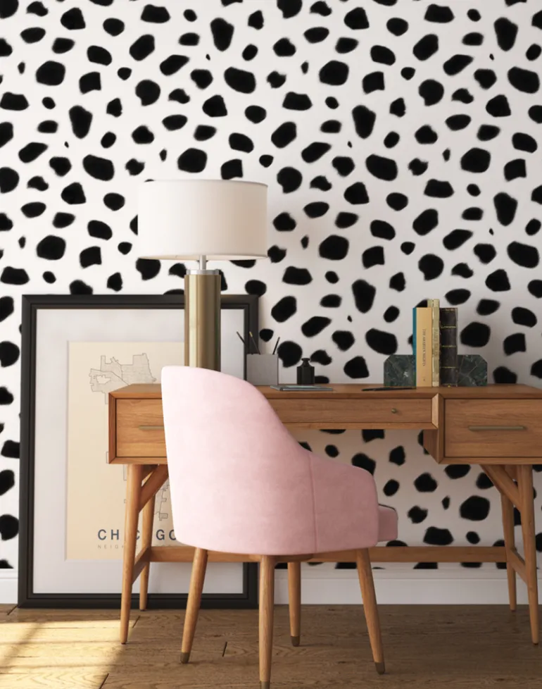 At Charlotte Jade, we are totally obsessed with Dalmatian Print! Our hand drawn design captures every single hair stroke, (scroll through and take a peak at the hairy details) in a beautifully distinctive pattern design which really hits the spot! This gorgeous monochrome wallpaper is perfect for creating that stand out wall in your office, bedroom or living room and can be paired with a whole range of colors and interior textures.