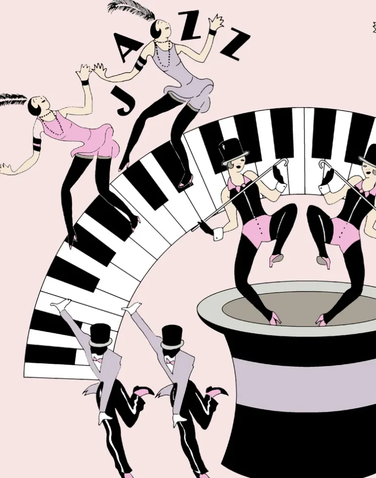 A bold, fun Art Deco, creative wallpaper Jazz Age design, a touch of the Busby Berkeleys