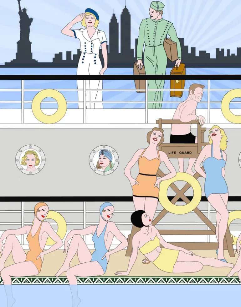 Art Deco wallpaper design inspired by the ‘Flying Down To Rio’ movie and the golden age of flight