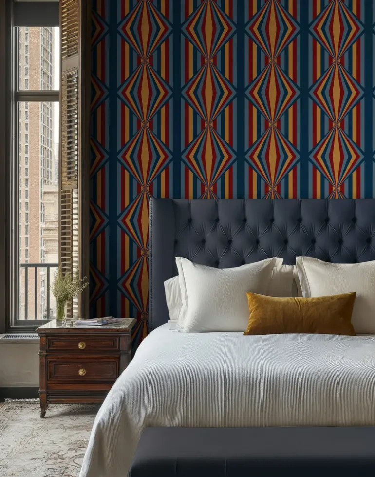 The Deco Prism wallpaper collection brings timeless elegance and bold style to your interiors with its striking Art Deco-inspired geometric design. Featuring a harmonious blend of angular symmetry and contemporary flair, this collection is available in a variety of luxurious colorways to suit every aesthetic.