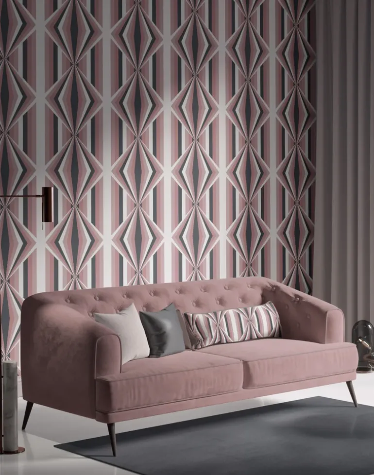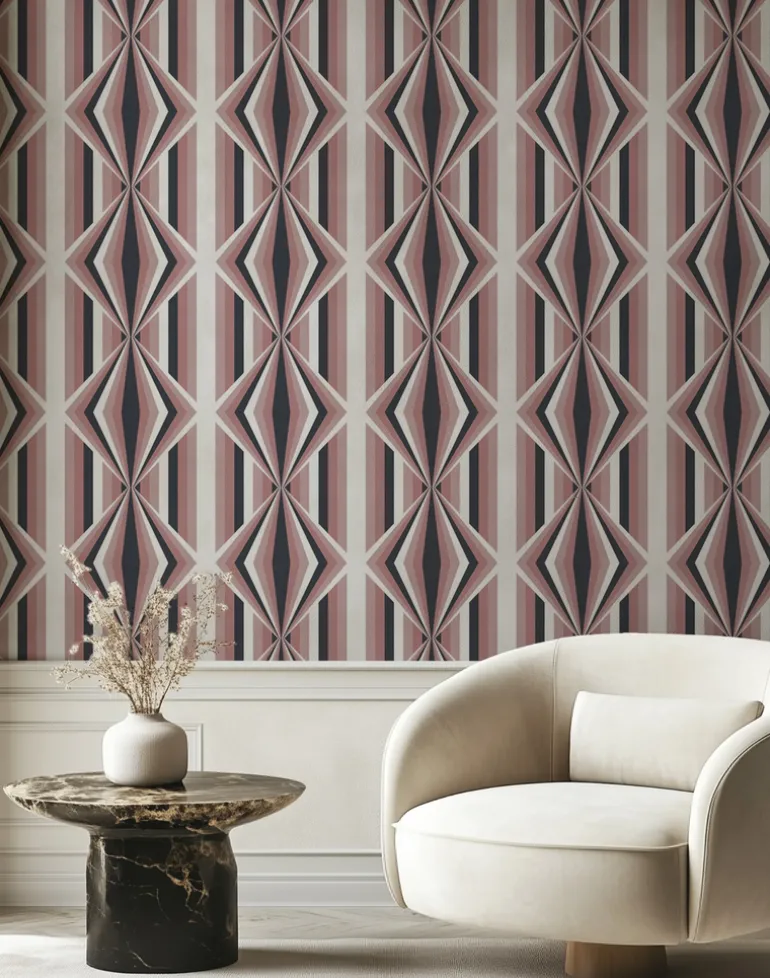 The Deco Prism wallpaper collection brings timeless elegance and bold style to your interiors with its striking Art Deco-inspired geometric design. Featuring a harmonious blend of angular symmetry and contemporary flair, this collection is available in a variety of luxurious colorways to suit every aesthetic.