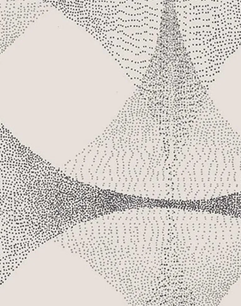 A pointillist lattice pattern intersects to create a mix of circles and diamonds.