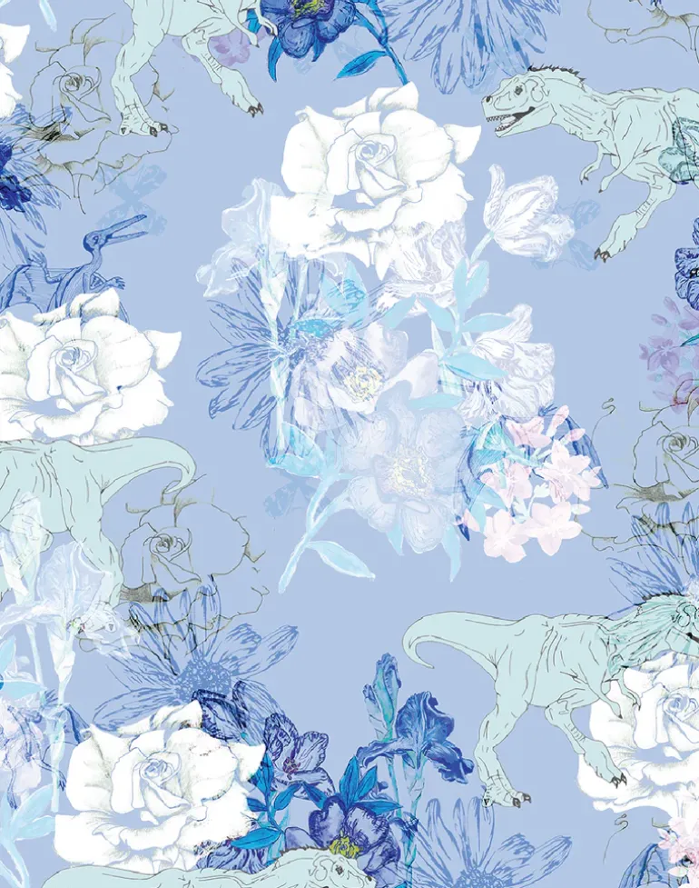 ‘Fleurassic Park’ is a collection born of magic and fantasy. Dinoflorous is a design for people who want more out of their wallpaper. They want art. They want intrigue. They want beauty. They want a statement. A gorgeous design for girls and boys alike. Gaze in wonder at the hand illustrated and painted elements allowing you to get lost within the story of this collection, let your imagination run wild. For those quirky interior spaces, not just for children.