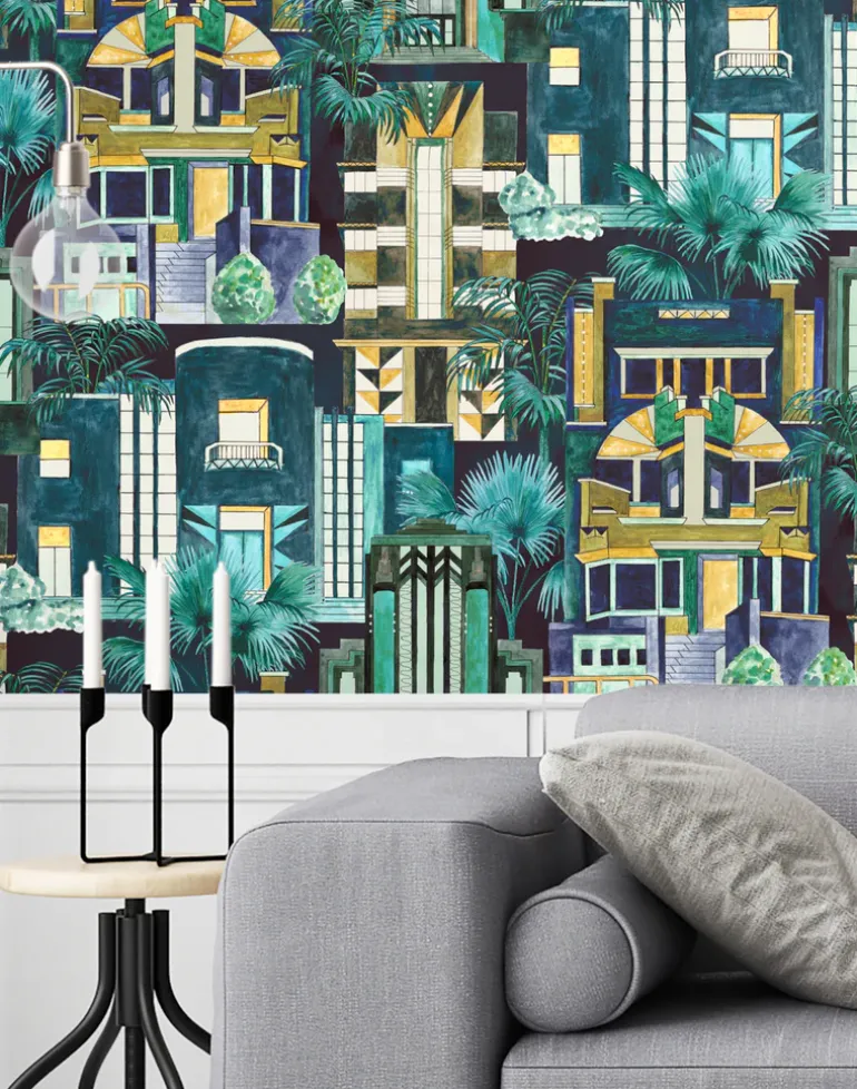 Downtown Deco is the ultimate in decadence and extravagance. Each building has its own unique architectural design forming a wondrous pictorial image. Trees intertwine with the buildings giving an aura of opulence that only existed in a time where vulgarity ruled and life was about being rich. Brand McKenzie hope you indulge and immerse yourself within Downtown Deco.