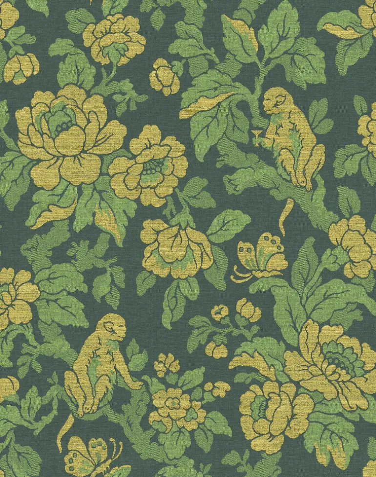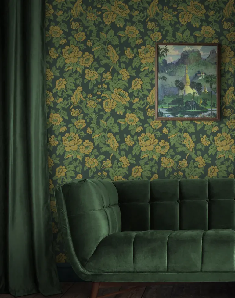 Inspired by the “Drunken Monkey” hypothesis that humans inherited their love of alcohol from our cheeky primate ancestors. Sipping on nature’s nectar, this decorative floral print wallpaper brings potent pattern to any interior.