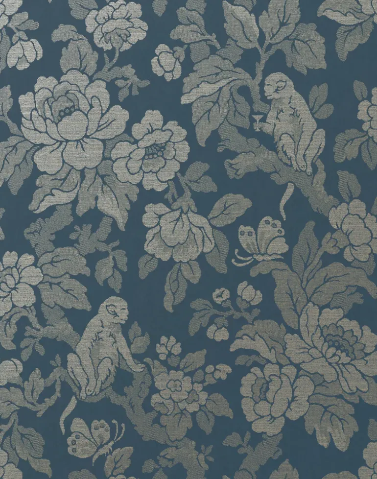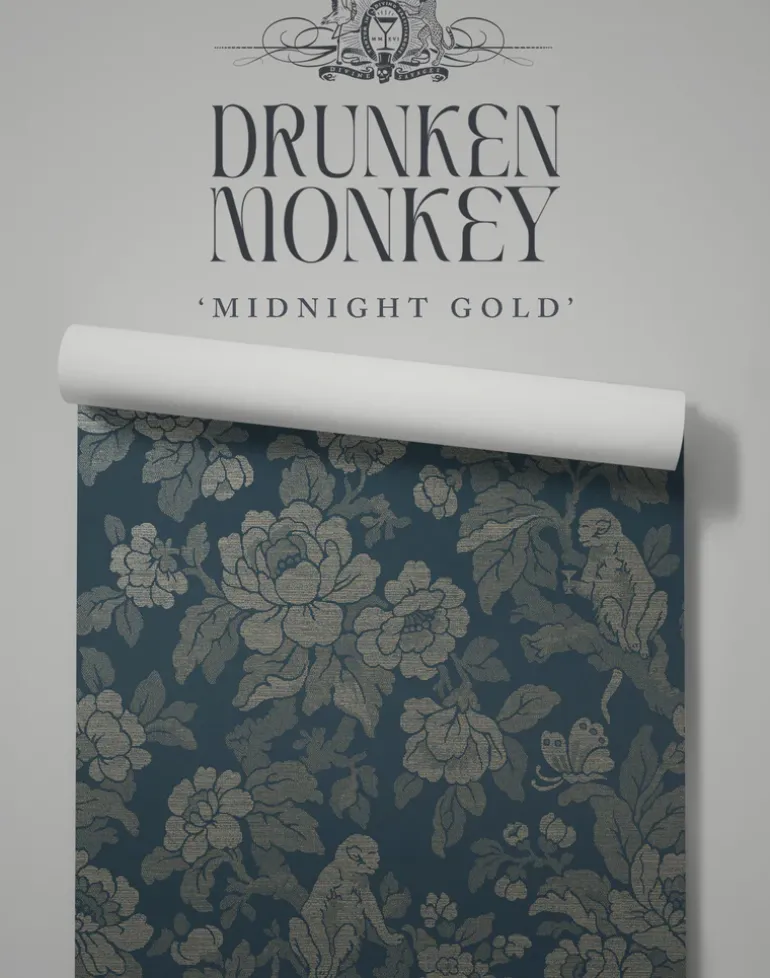 Inspired by the “Drunken Monkey” hypothesis that humans inherited their love of alcohol from our cheeky primate ancestors. Sipping on nature’s nectar, this decorative floral print wallpaper brings potent pattern to any interior.
