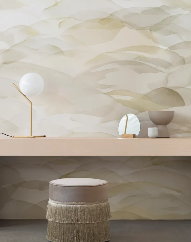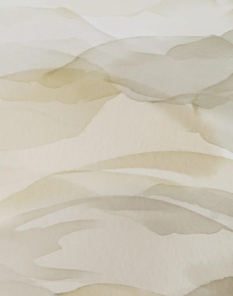 Layers of hand-painted watercolor flow across the paper, designed to bring restfulness to a room, adding a delicate and decorative touch.