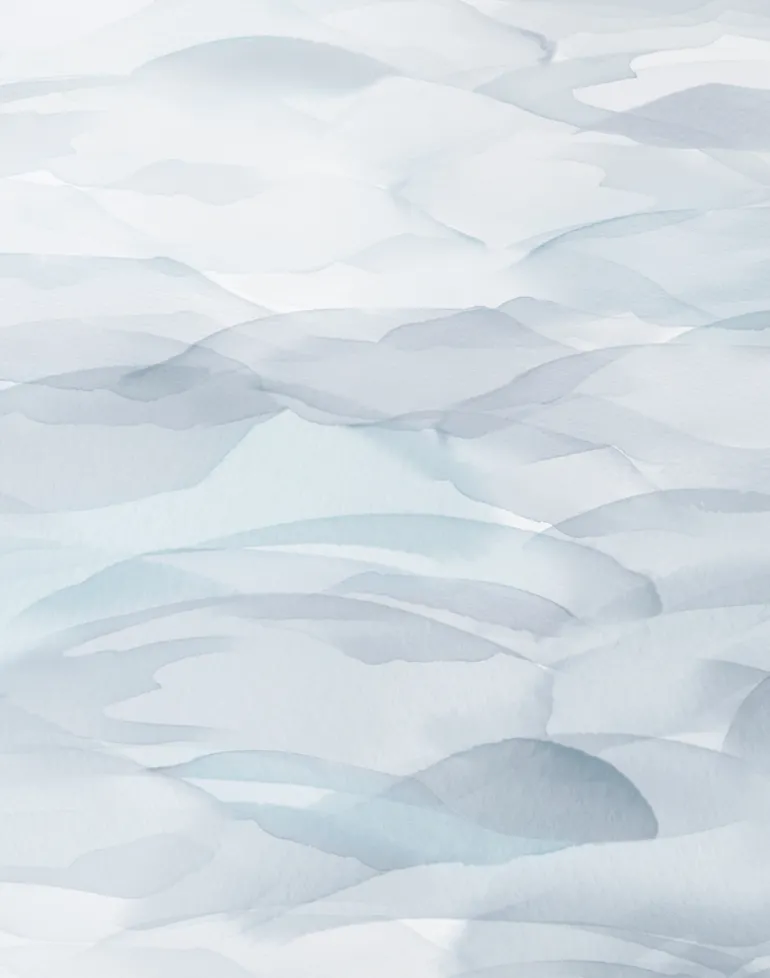 Layers of hand-painted watercolor flow across the paper, designed to bring restfulness to a room, adding a delicate and decorative touch.