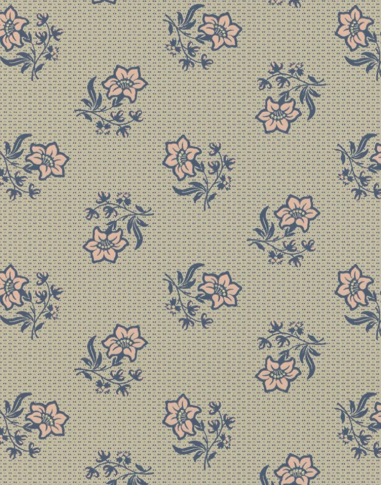 A beautifully stylistic flower. Borrowed from an old Chinese woodblock printed textile, but with clear European influences. The simple motif is printed in different directions to create a dynamic flow to the design. Sophisticated and delicate.