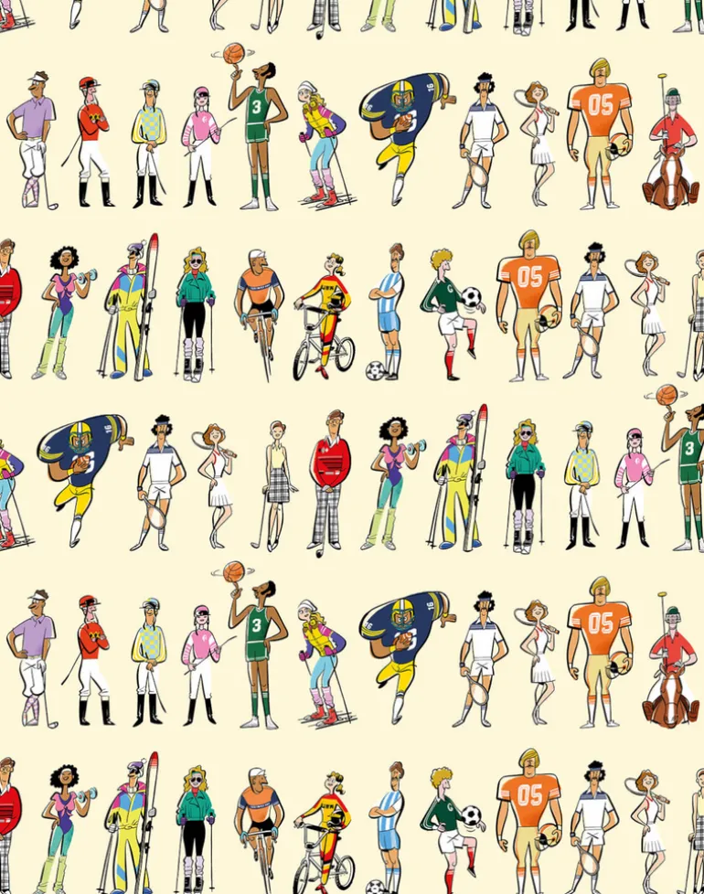 Multi colored illustration on a cream background