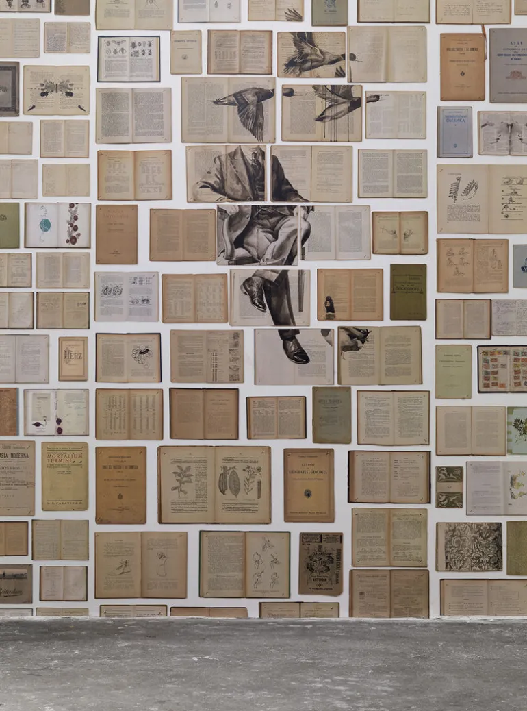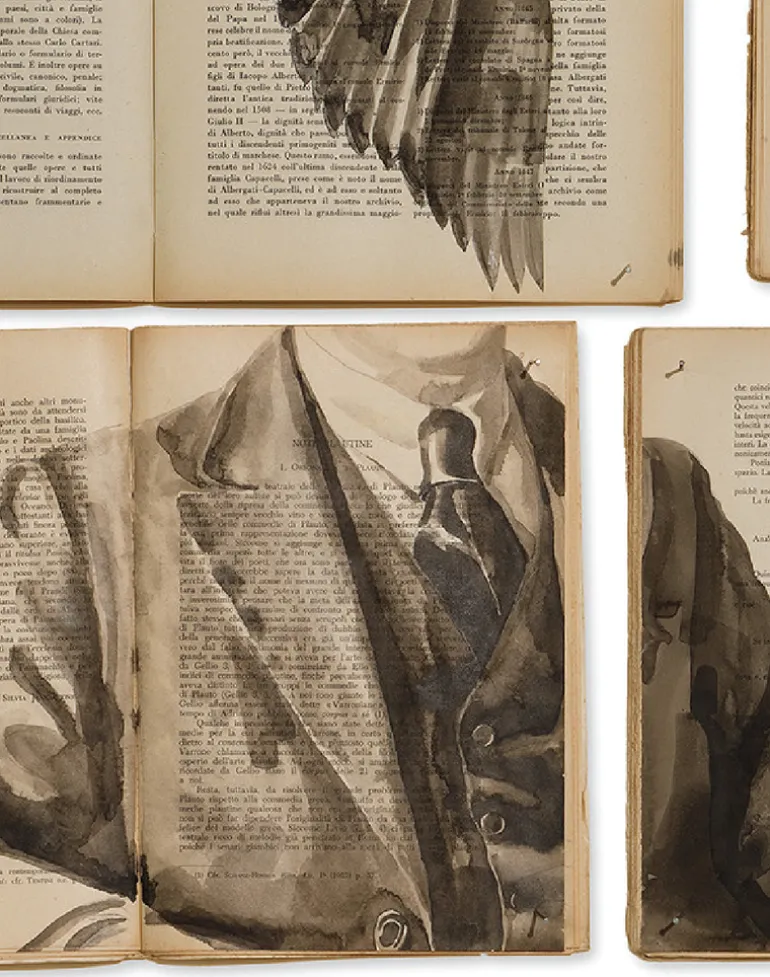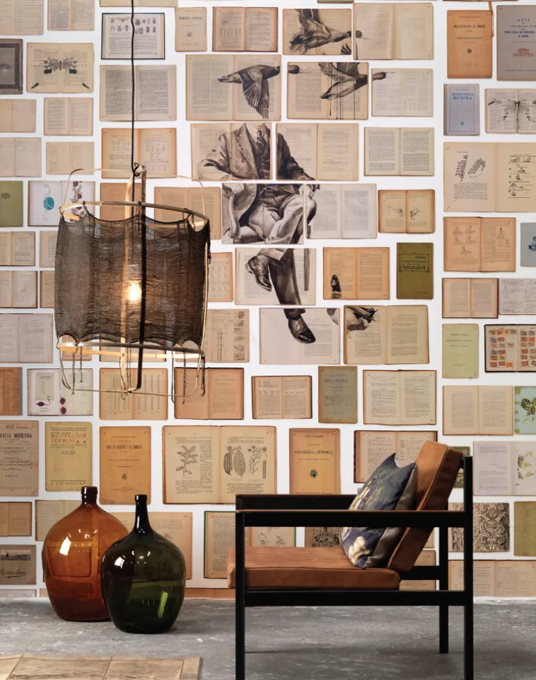 This collection comprises old books on which large paintings have been painted, ultimately resulting in 7 designs (5 murals and 2 wallpaper rolls).