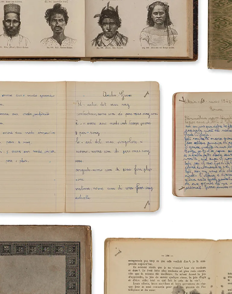 This collection comprises old books on which large paintings have been painted, ultimately resulting in 7 designs (5 murals and 2 wallpaper rolls).