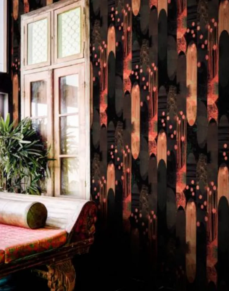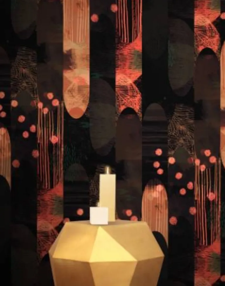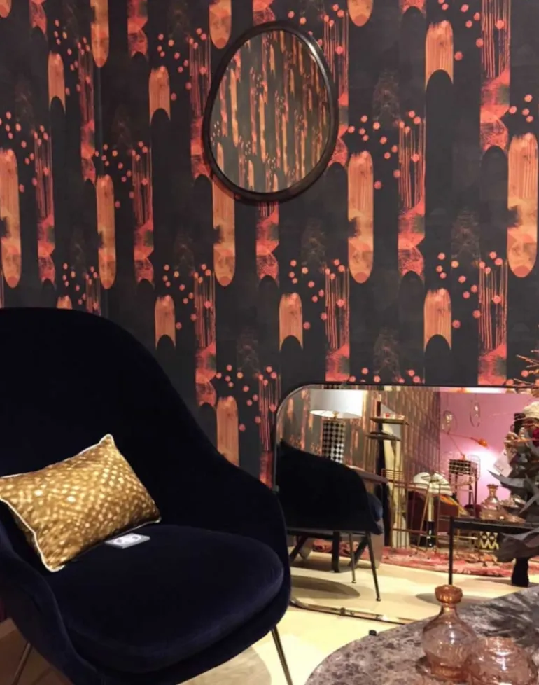 A warm and unique contemporary wallpaper design, redolent of the luxury of night spent by a fire with good friends, good food and great whisky.