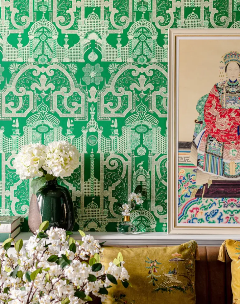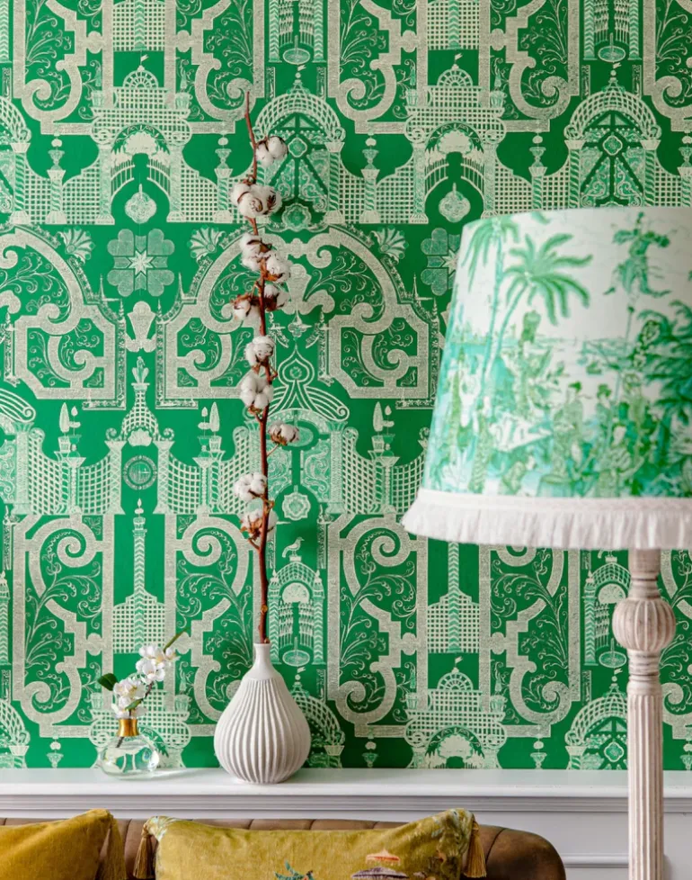 Displaying a captivating, detailed pattern of an old Chinese maze garden, the EMPEROR’S LABYRINTH is a marvelous work of art and a riveting background setting. Inspired by an old drawing created to celebrate the eighteenth century Imperial gardens, this design praises the uniqueness and perfection of shrubberies and bushes grown on royal grounds. Symbolizing wealth and growth, the deep green shaded layout brings harmony and outdoor soothing vibes to your indoor spaces. Available in a deep greenlake monochromatic and bright orange with green color scheme.