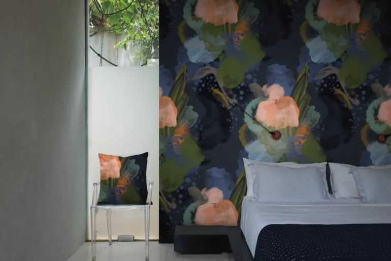 Trained as a fine artist at Helsinki’s world-renowned Aalto School of Art, Reeta Ek brings the aesthetic and imagination of fine art to interior design. In English Rose, layered brushstrokes interact, creating a work of depth, intrigue and dramatic, raw emotion.