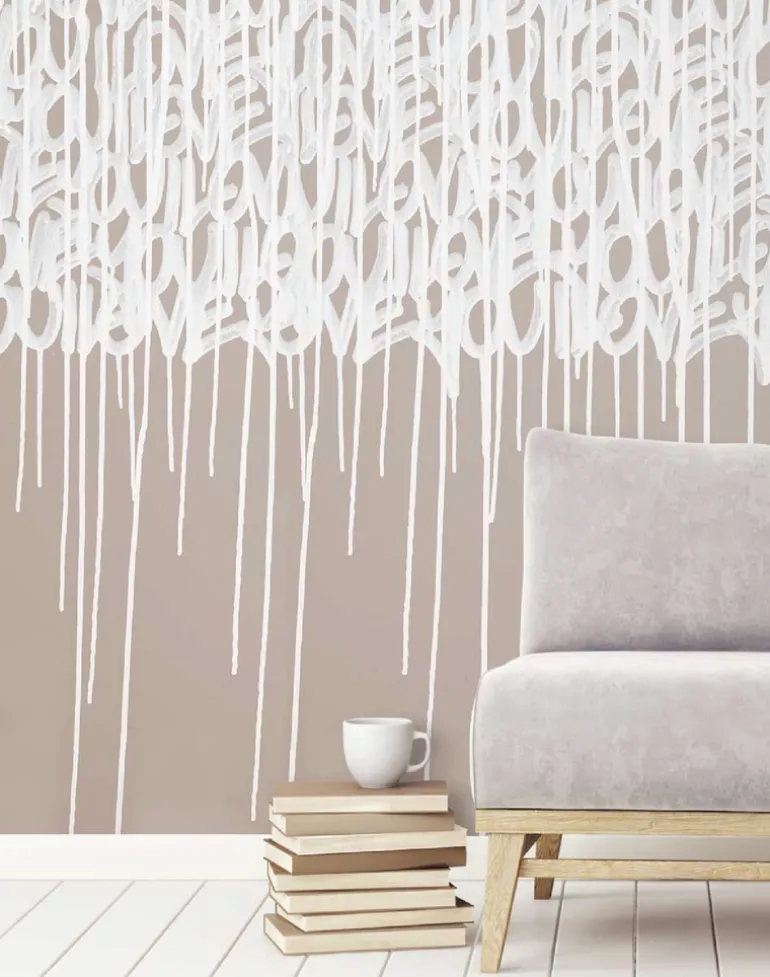 The Enlightened Love graffiti wallpaper has been created by Los Angeles artist Amber Goldhammer. Mixing a soft palette of colors with the organic flow of her graffiti tagging, it’s subtle and beautiful way to bring street art into the home. Amber’s trademark positive messages of love and hope can be seen on the streets of LA, as well as hung as canvases and wallpapers all over the world.