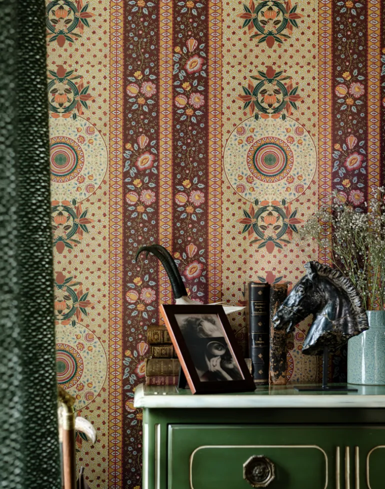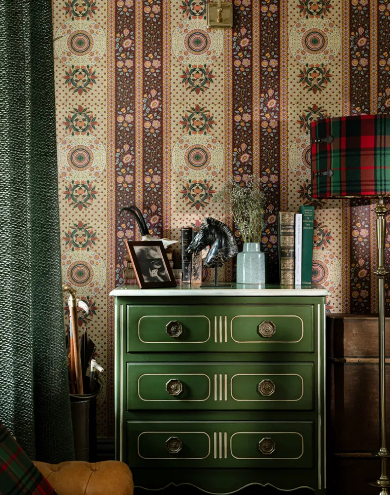 Called ERBSTÜCK, meaning ‘heirloom’ this striped wallpaper is indeed worthy of such a status. Featuring an intricate combination of pretty flowers, stitch-like pattern and delicate leaves arranged in circular motif, it’s a timeless design that encapsulates the essence of the Tyrol.