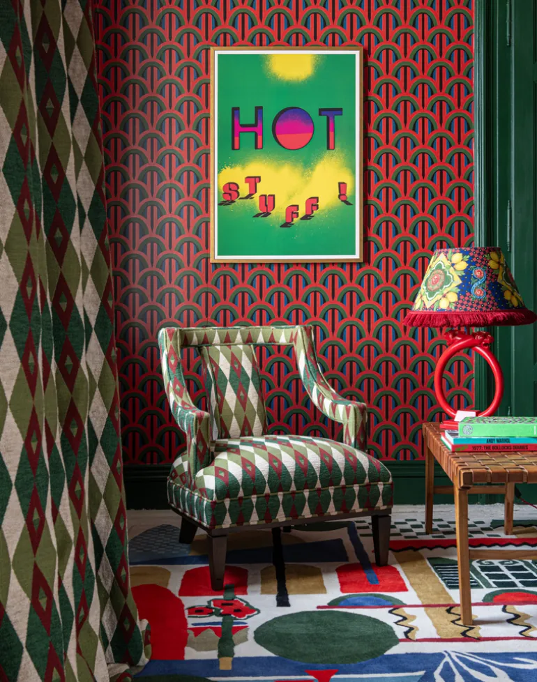 A captivating wallpaper infused with vibrant geometric patterns that are endlessly repeated, reminiscent of sparkling ocean waves. Here, relaxation is at its core, creating a cheerful ambiance that effortlessly elevates any space. Alongside these coastal-inspired motifs, ESTIVO also features an abstract pattern bringing back memories of childhood rainbows, set against a serene blue background in a trendy retro style. This fusion of elements adds an extra layer of whimsy and nostalgia, enhancing the allure of your interiors with dynamic energy and timeless appeal. Available in five hues that represent the sunniest months of the year, including Maggio, Giugno, Luglio, Agosto, and Settembre, ESTIVO offers such great versatility.