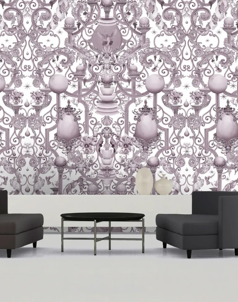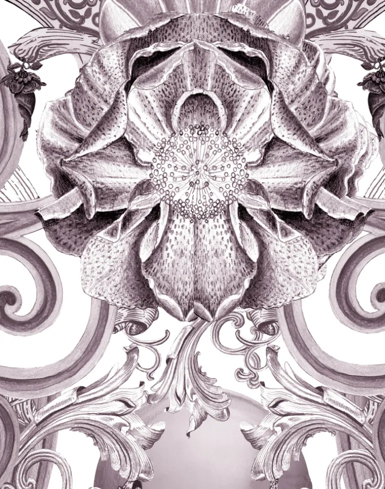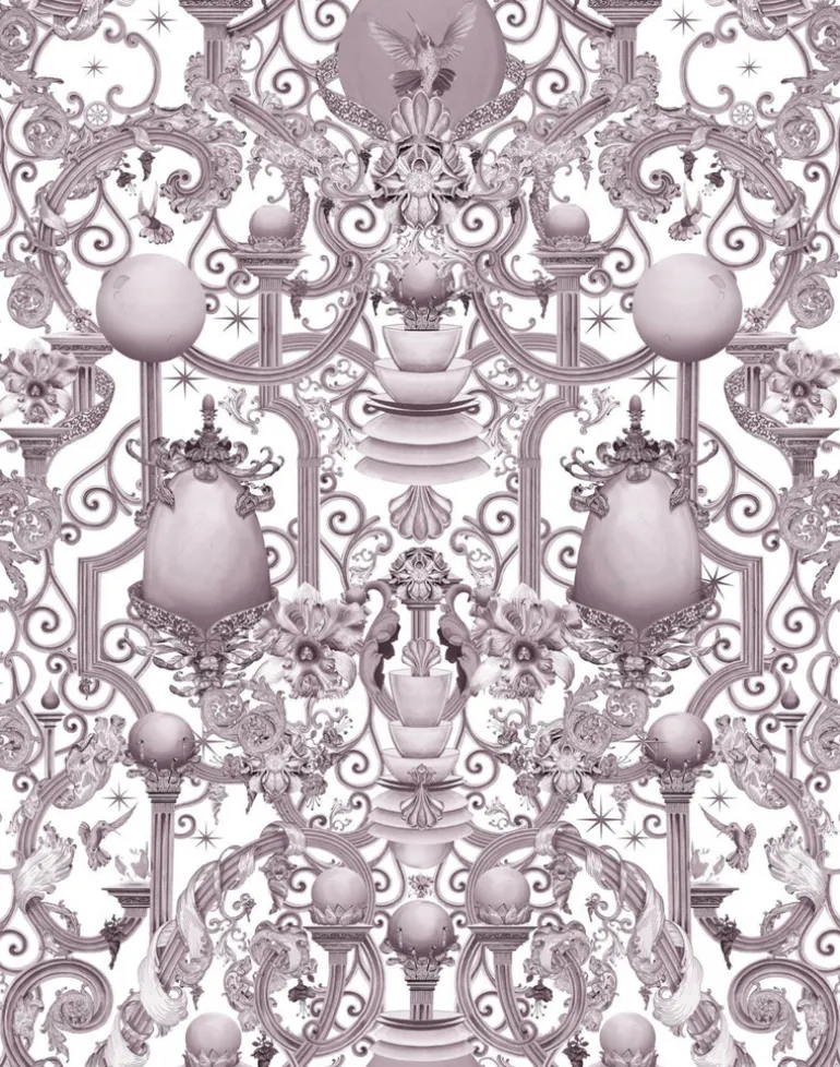 Europa unabashedly revels in the complexity and wonder of the natural and manmade world. An ornate, Corinthian-esque gate forms the architecture of the Baroque design, laden with a wealth of unexpected, lavish images, either of or inspired by the natural world. An expression of the human drive to peer beyond the realm of the visible into the unknown, this grand assemblage reads like a marvellous floating city. Printed onto super-wide, textured paper, the intricacy of this polychromatic design invites the onlooker to lose themselves in an imaginative realm that lies beyond.