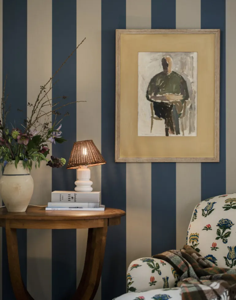 The stripes never wear off and we’re happy about it. Lineup Evening swim is a cheeky block-striped blue wallpaper. Named after the evening dip that makes you feel life in you. Match it with the plain Pier tactile wallpaper or the blooming unforgettable Habibi.