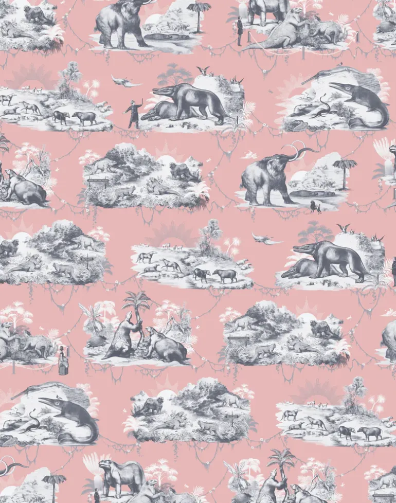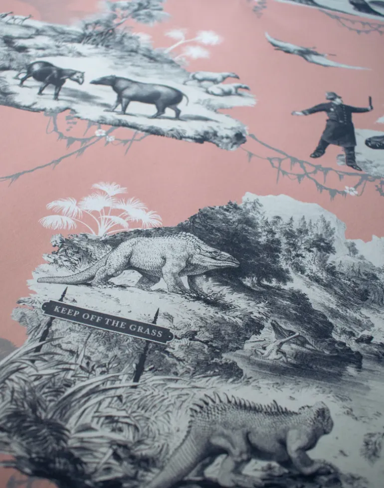Taking inspiration from Benjamin Waterhouse Hawkin’s elaborate Victorian theme park at Crystal Palace, South-East London. Featuring a plethora of prehistoric beasts as they skulk in the bushes and frolic in the water, you’ll also notice the Victorians of the time as they wander through their Jurassic fantasy world. This detail-rich, large scale wallpaper will bring an artful ambiance to any interior.