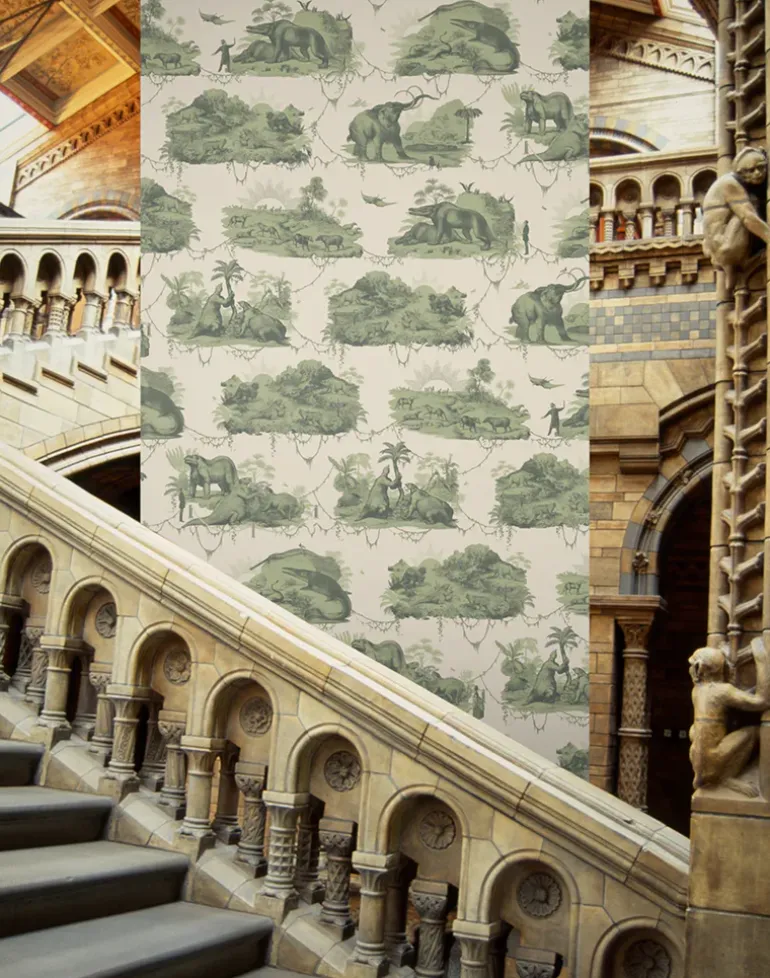 This detail-rich, largescale wallpaper will bring an artful ambience to any interior, whether you are looking for living room wallpaper or bedroom wallpaper. Discover Galapagos Green, a calming palette of soft greens with a neutral background. Designed to surprise, our Extinctopia wallpaper takes inspiration from the elaborate Victorian theme park once housed at Crystal Palace, South-East London.