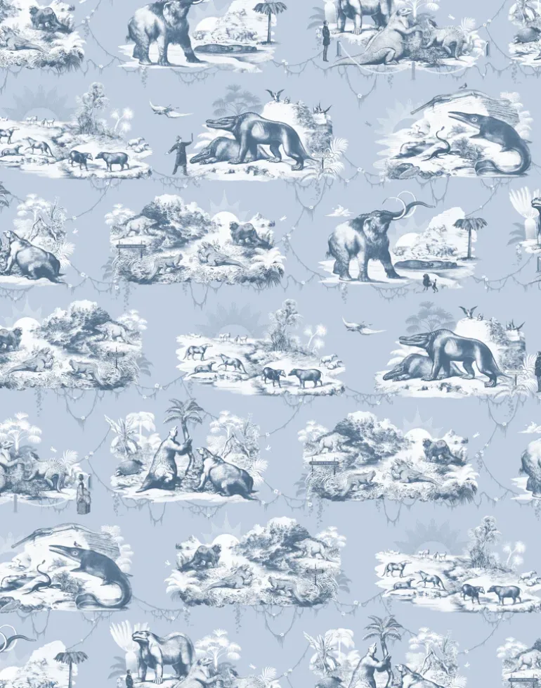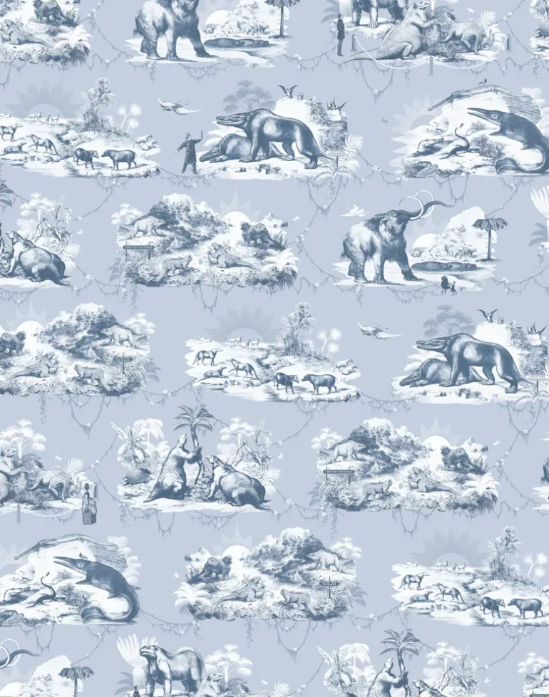 Taking inspiration from Benjamin Waterhouse Hawkin’s elaborate Victorian theme park at Crystal Palace, South-East London. Featuring a plethora of prehistoric beasts as they skulk in the bushes and frolic in the water, you’ll also notice the Victorians of the time as they wander through their Jurassic fantasy world. This detail-rich, large scale wallpaper will bring an artful ambiance to any interior.