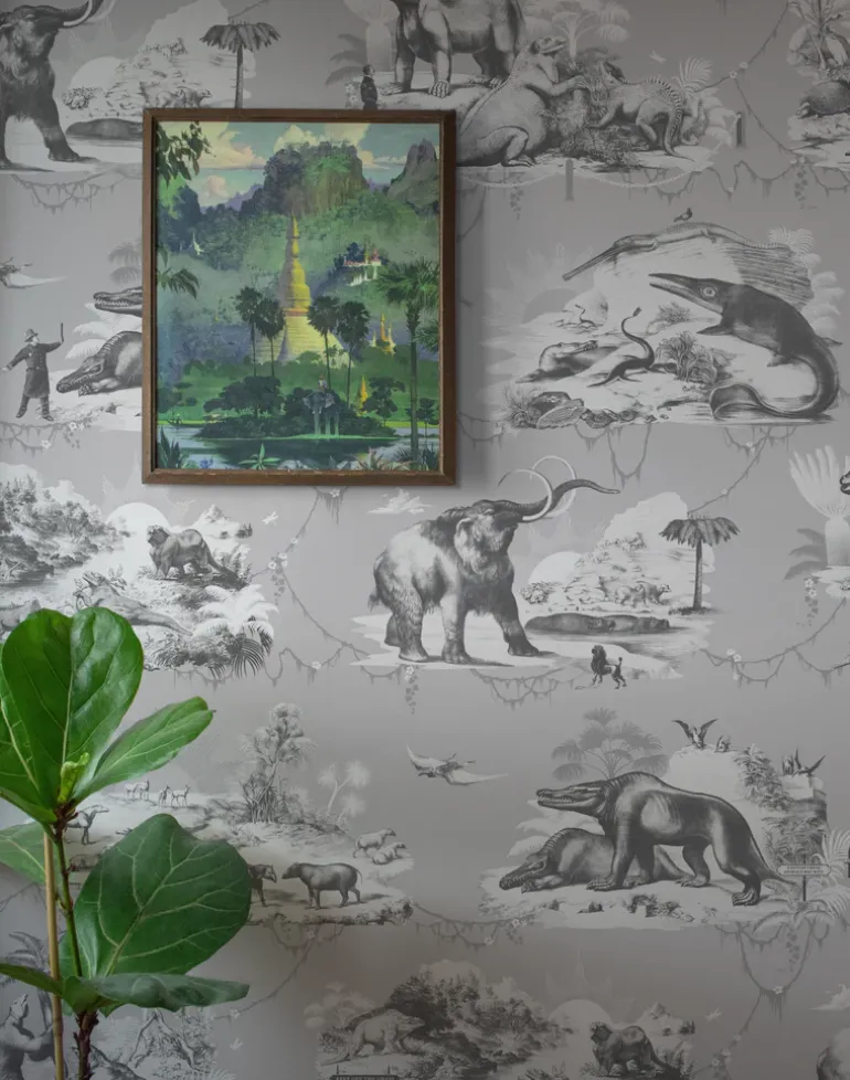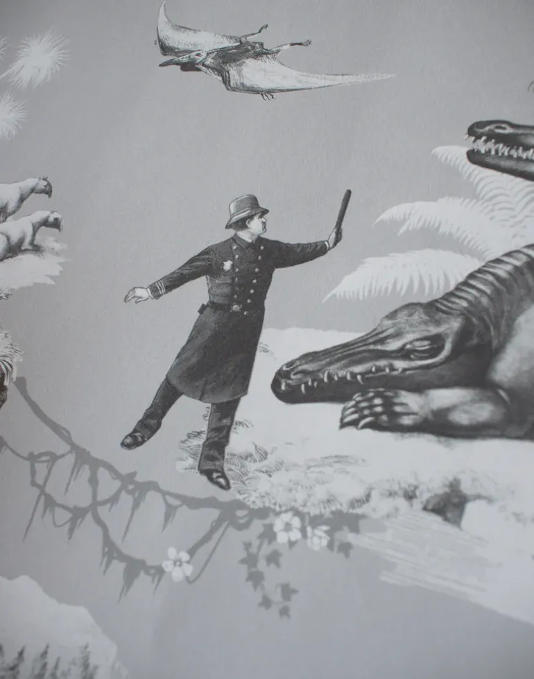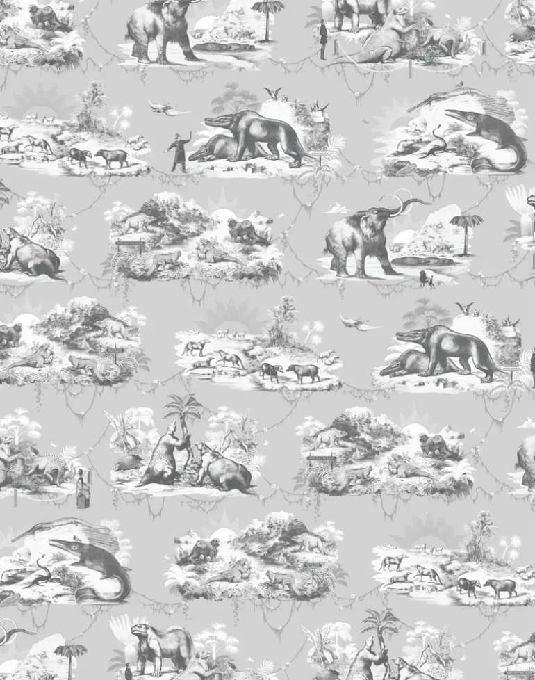 Taking inspiration from Benjamin Waterhouse Hawkin’s elaborate Victorian theme park at Crystal Palace, South-East London. Featuring a plethora of prehistoric beasts as they skulk in the bushes and frolic in the water, you’ll also notice the Victorians of the time as they wander through their Jurassic fantasy world. This detail-rich, large scale wallpaper will bring an artful ambiance to any interior.
