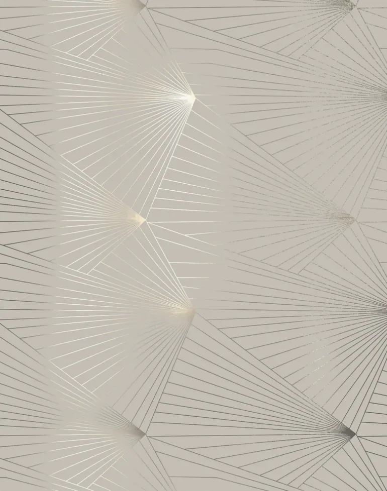 A natural warm limestone toned wallpaper with a reflective, patinaed pewter line (comparable to a warm silver)