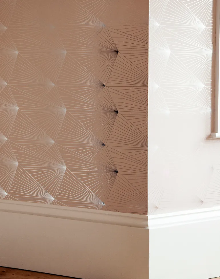 Historically, wallpaper was often designed to imitate a scene or luxurious fabrics such as velvet or silk draperies. Erica has adopted a far more architectural approach to her practice, by developing wallcoverings that become an integral part of a room’s composition – a structural element that is just as essential as an item of furniture. Inspired by the pioneering, modernist principles of design, her collection uses repetition, shape and color to create the illusion of space, stripping back the superfluous and allowing rooms to breathe.