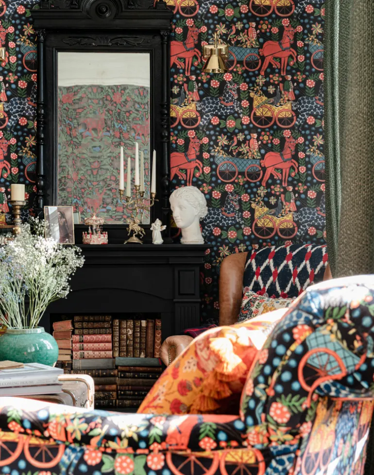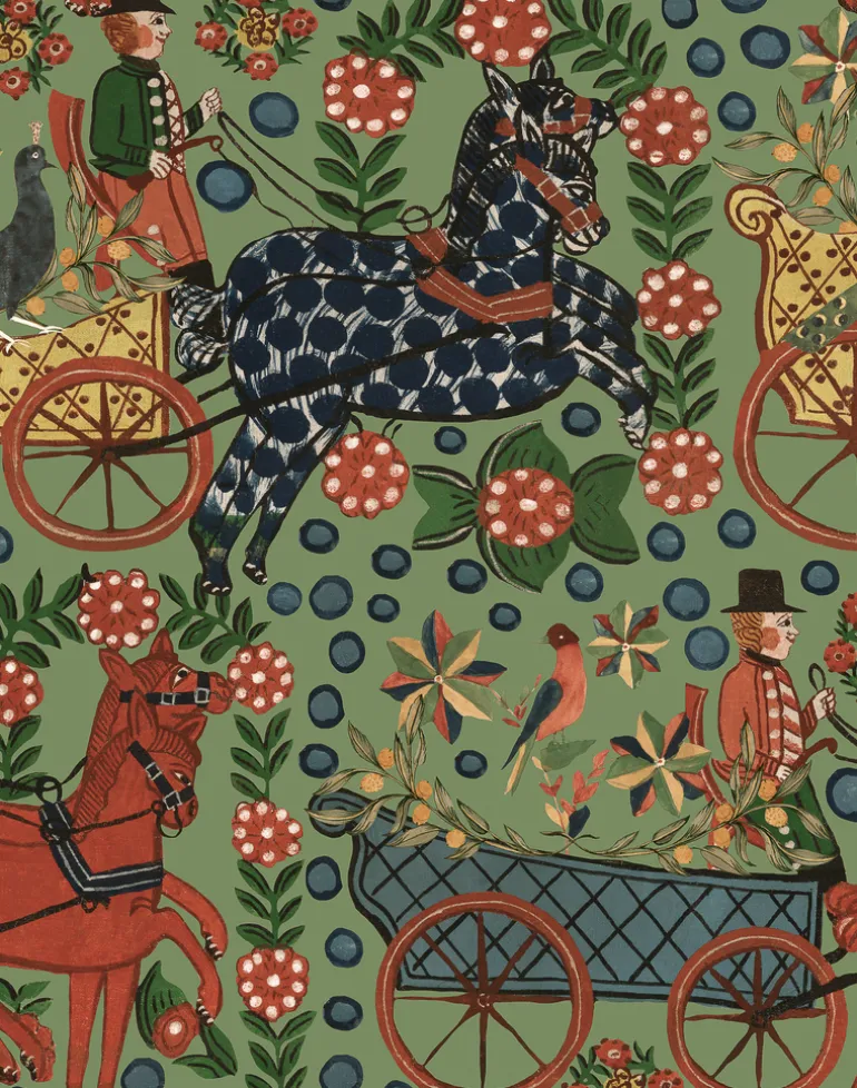 Be transported directly to the wondrous carnival of Innsbruck with FASNACHT, an explosion of pattern that embodies the spirit of Switzerland’s favorite festival. A parade of colorful carriages, top hatted coachmen and high stepping horses trot across recreating the joyful atmosphere of the old style fairs where locals where celebrating the Winter with all its seasonal rituals.