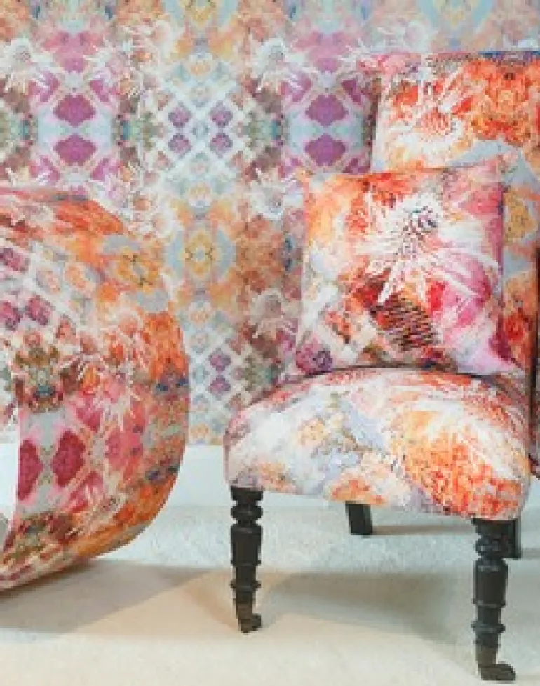 Thistle print bespoke wallcovering. An eclectic ‘pink thistle’ design inspired by the Scottish landscapes, nature, rustic textures, flora and tartans.