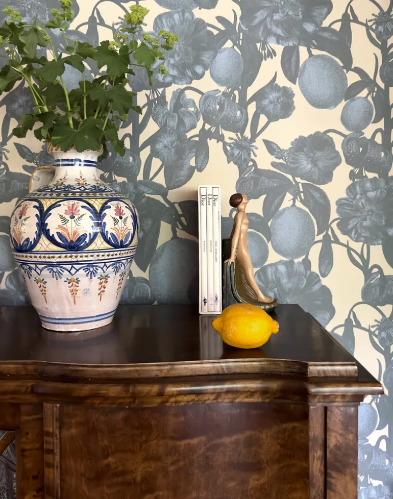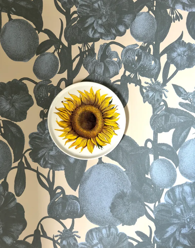 The Firenze pattern is a tribute to Italy and its beauty. Previously launched as a fabric in completely different colors, this pattern with its lovely flowers and fruits offers a new twist in true Studio Lisa Bengtsson style with a small insect hidden among the lush plants.