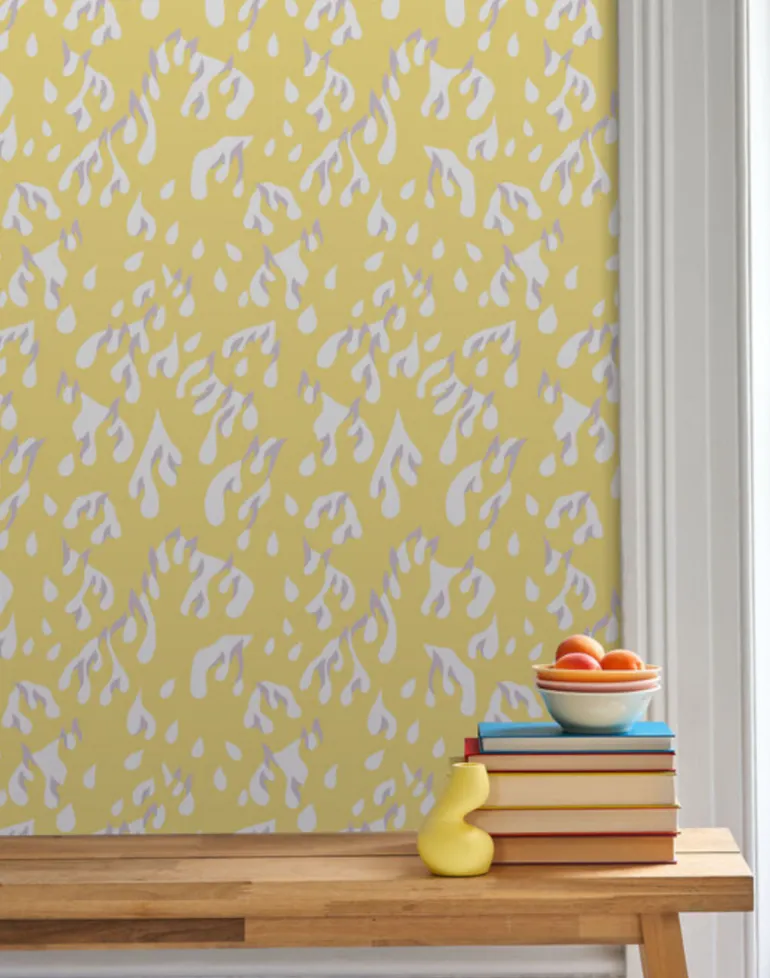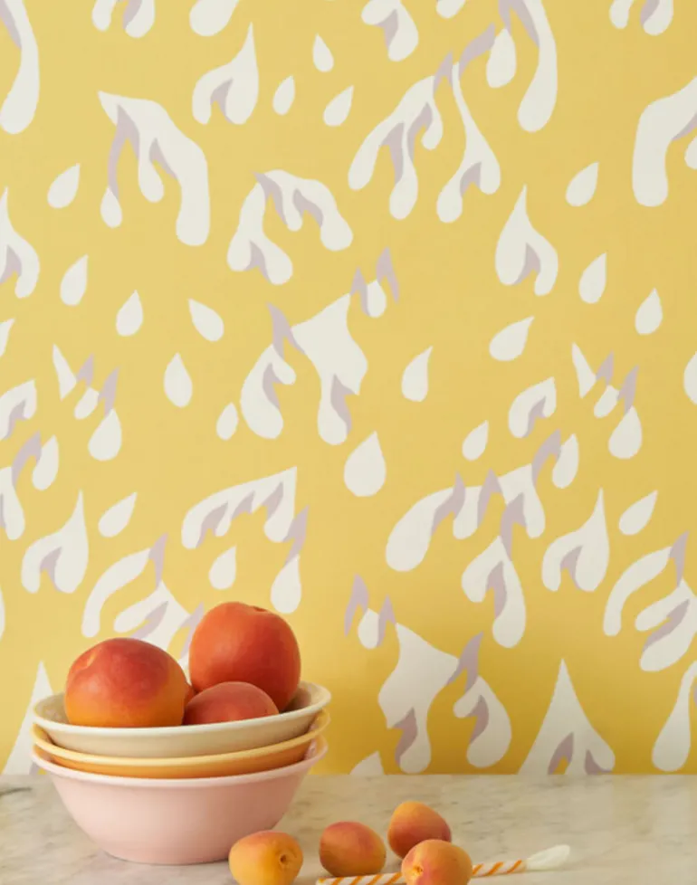 This trickling and tumbling Flame wallpaper is designed by Ellen Martin and is inspired by the intricate carved statues found in the temples of beautiful Kyoto.