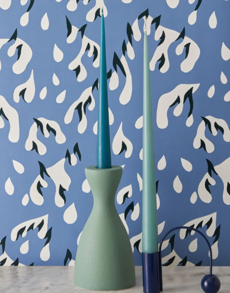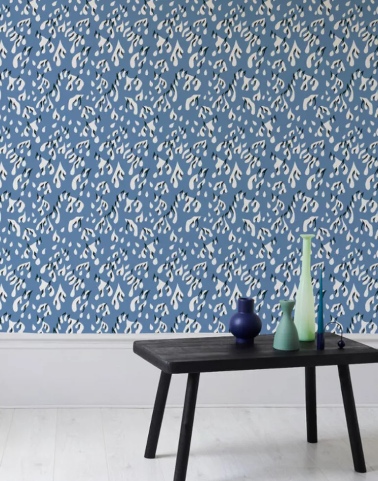 This trickling and tumbling Flame wallpaper is designed by Ellen Martin and is inspired by the intricate carved statues found in the temples of beautiful Kyoto.