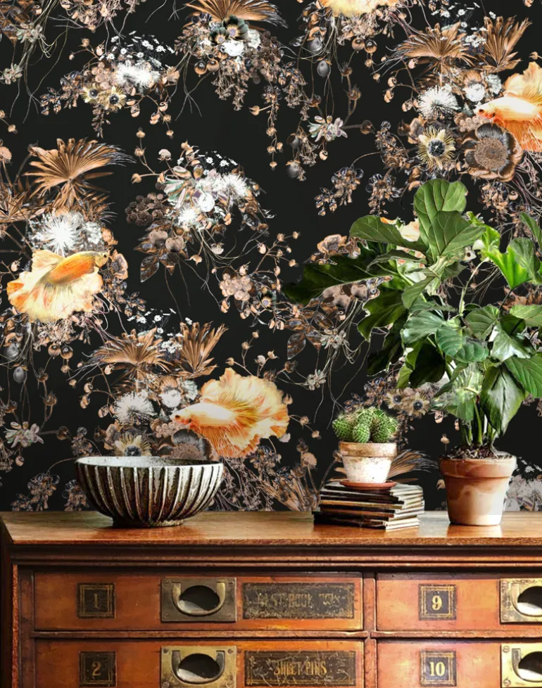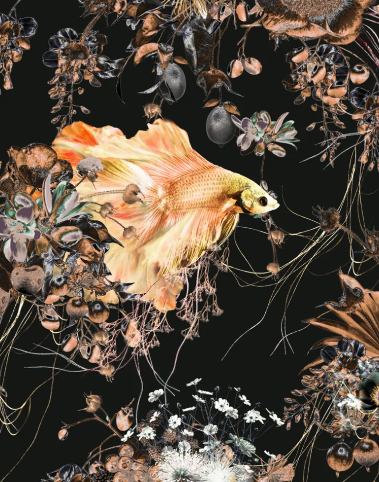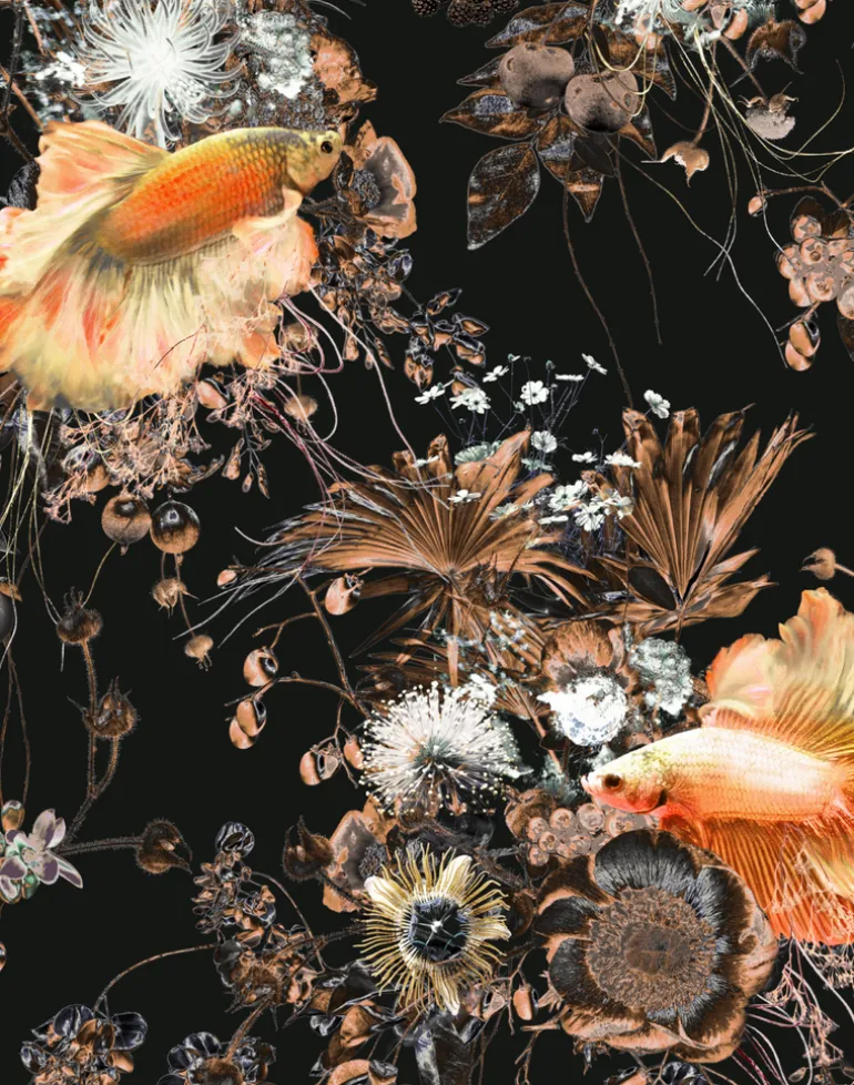 The Forgotten Lagoon design is part of the Sea in Bloom collection, which draws inspiration from the deep sea and its vibrant creatures. The surrealistic design style depicts the beauty and delicateness of marine life.
