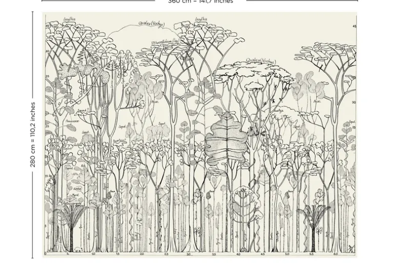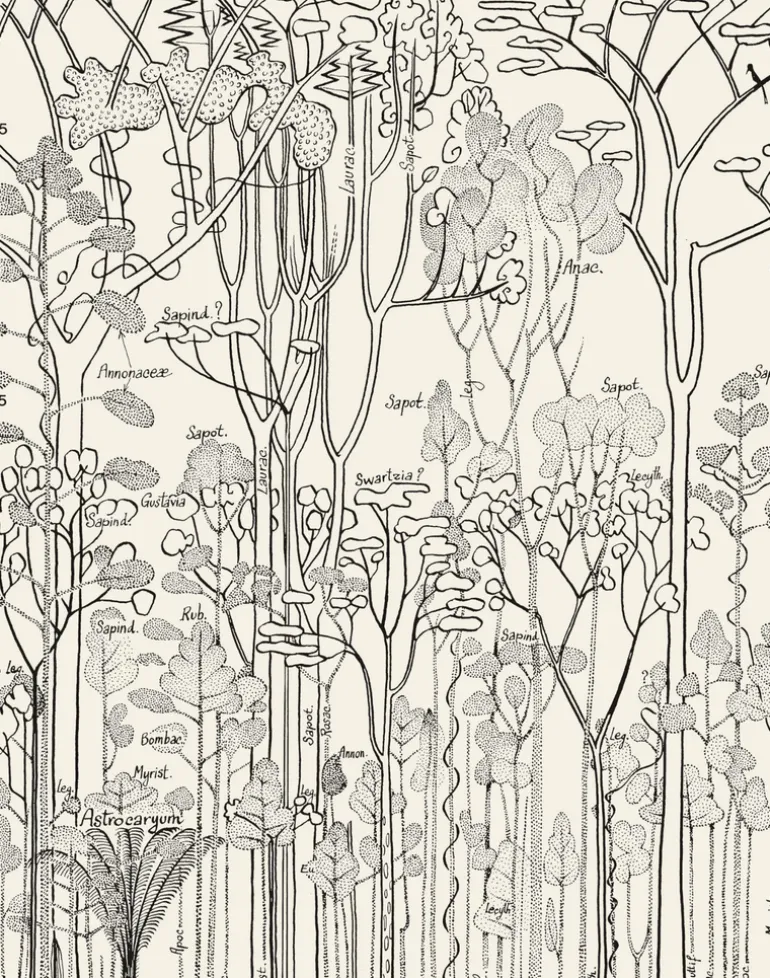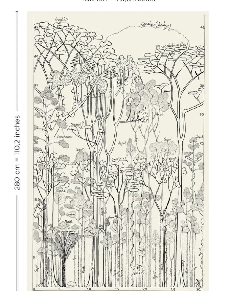 Halfway between art and science, this hand drawn forest profile, is the result of studying a primary forest in French Guiana. Completely unique in its kind, it invites the consciousness on a great journey into the heart of a friendly forest.