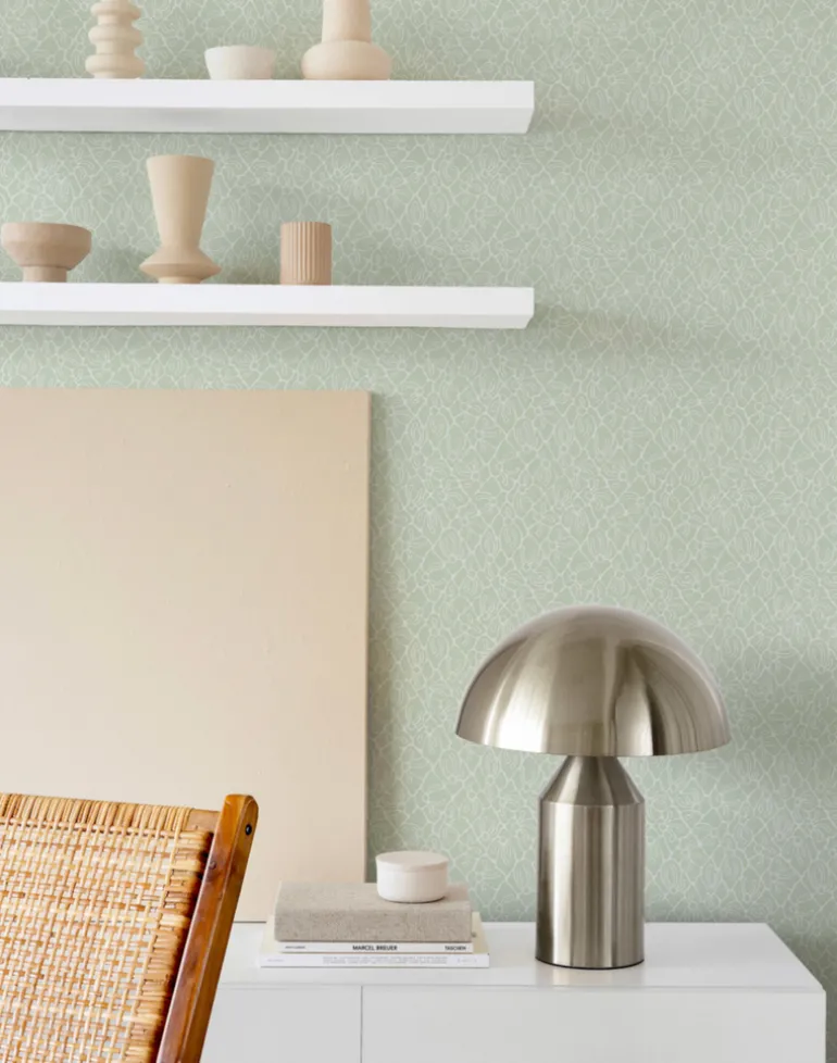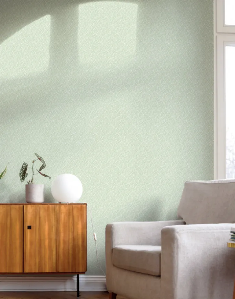 Infuse any room with the revitalizing essence of nature and lushness with our Fröviva Lichen Green wallpaper. The soft green leaves and joyful pistils exude freshness. This graceful and sophisticated pattern is perfect for bringing a subtle touch of nature indoors and looks beautiful in any space.