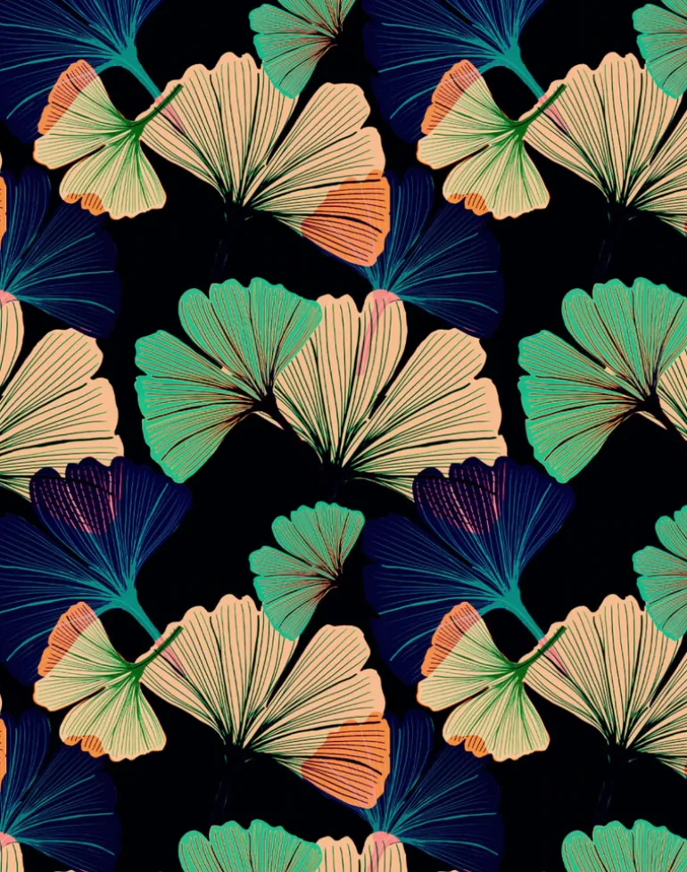 This exquisitely beautiful hand drawn ginkgo leaf design is the second in Tatie Lou’s new collection, Pachamama (Mother Earth).