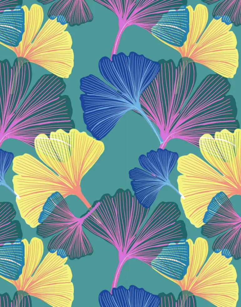 This exquisitely beautiful hand drawn ginkgo leaf design is the second in Tatie Lou’s new collection, Pachamama (Mother Earth).