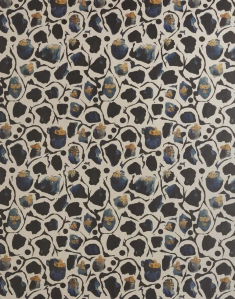 One of our best loved prints as a pearlized paper. Giraffe is an inky animal print inspired design with gold accents. In rich inky tones and off white, this paper would look fantastic with a gallery wall, on a ceiling, in the back of cupboards or alcoves. The pearlized effect gives life to the design creating a luxury feel.