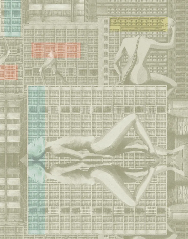 Inspired by idealised dreams and fears of the future from our recent past, aliens lurk in concrete utopias. Goldfinger Aliens wallpaper depicts mostly dismembered aliens lounging on the fabulous brutalist architecture of Erno Goldfinger. The future is yesterday!