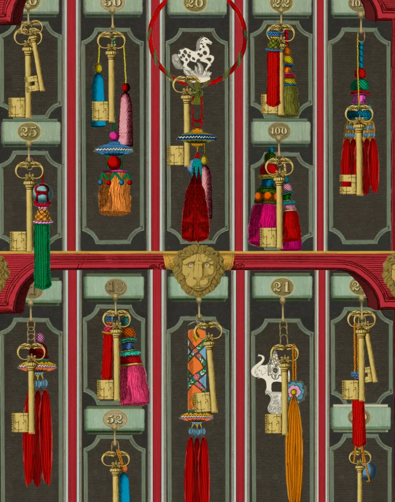 With the train prepared and ready for guests to step on board, the intricate beauty of each key in place, waiting for their collection within a handcrafted wooden display case, creates a striking visual presentation. Adorned with colourful tassels and exquisite embroidered decorations, what merely was a functional instrument has been elevated into an elegant statement of its own. The attention to detail witnessed in the GRAND SUITE KEYS print again highlights the luxurious magic of the Orient Express, transporting it directly into the home.
