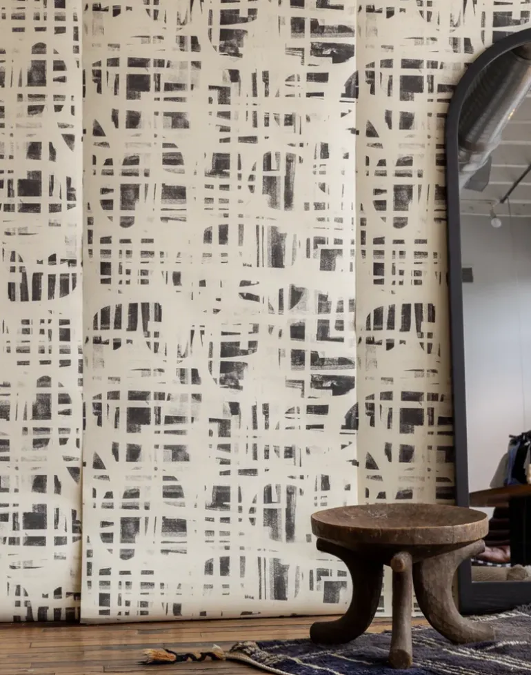 Inspired by the rhythmic qualities and expressiveness of modernism, Monoprint uses an original geometric painting as an imprint, layered to create a single opaque pattern. Architectural and high impact, this wallpaper is offered in a palette of intriguing hues.