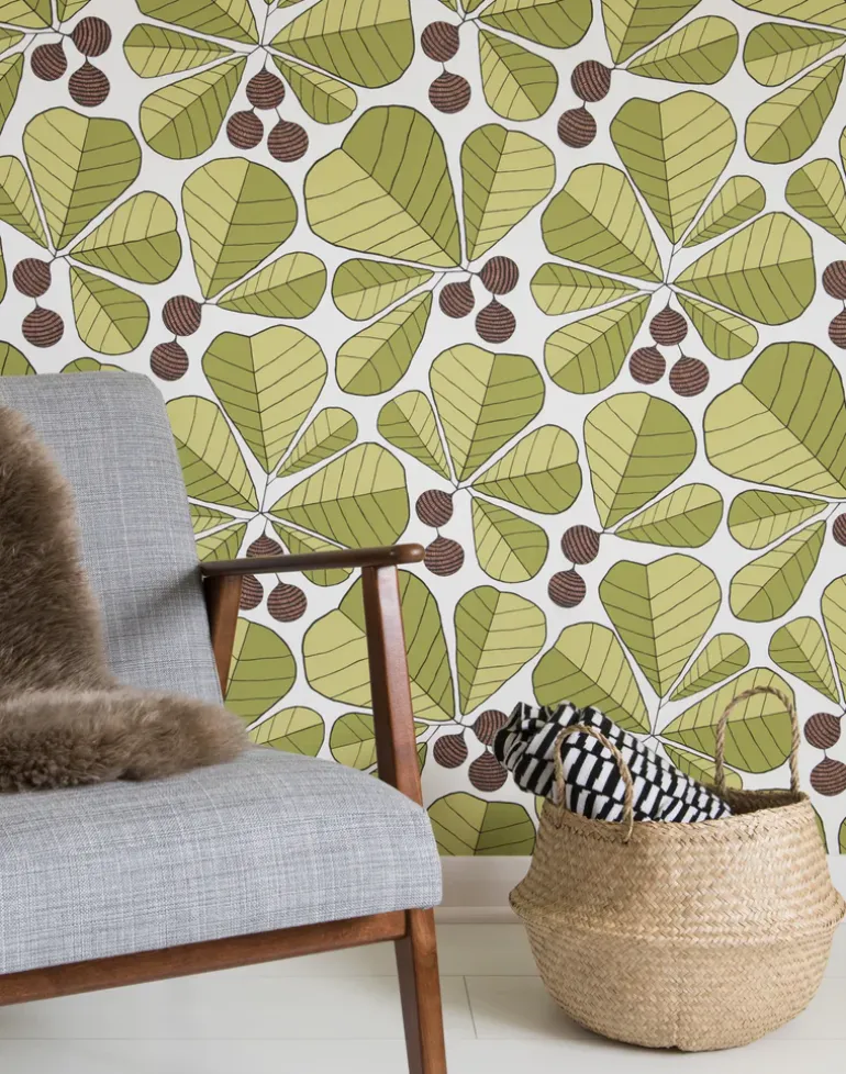Large wavy-edged fiddle-leaf-fig leaves were the inspiration for this design. All MissPrint designs are originally drawn by hand and developed in their own studio.