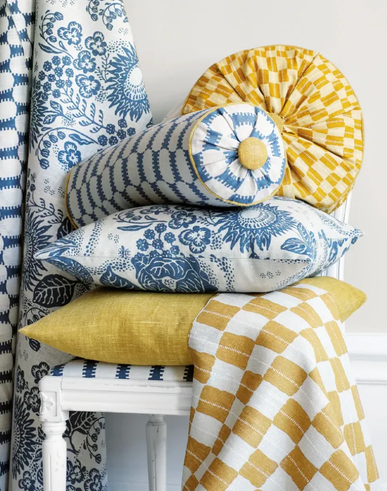 Gustav is drawn by hand and is printed by our Master printers on our beautiful and sustainable high quality linen weave, which is lively and make our patterns age with grace.