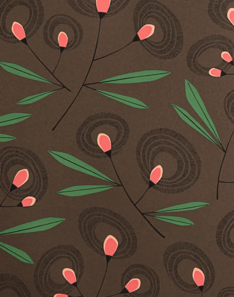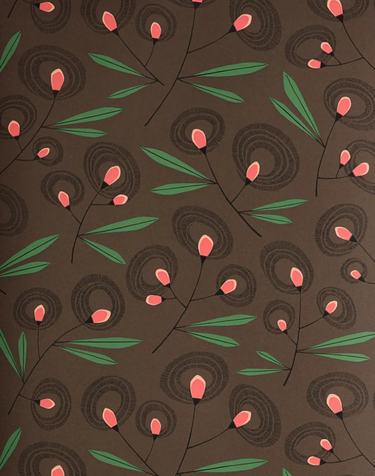 Inspired by the Australian Gum Blossom tree and its firework-like blooms, these flowers don’t have petals but instead offer an explosion of stamens, providing plenty of nectar for bees, other pollinators and nectar-feeding birds. Available in a charming palette of sage, soft blues and a neutral white with pops of berry and green, this design is perfect for those looking to add some character to their walls.