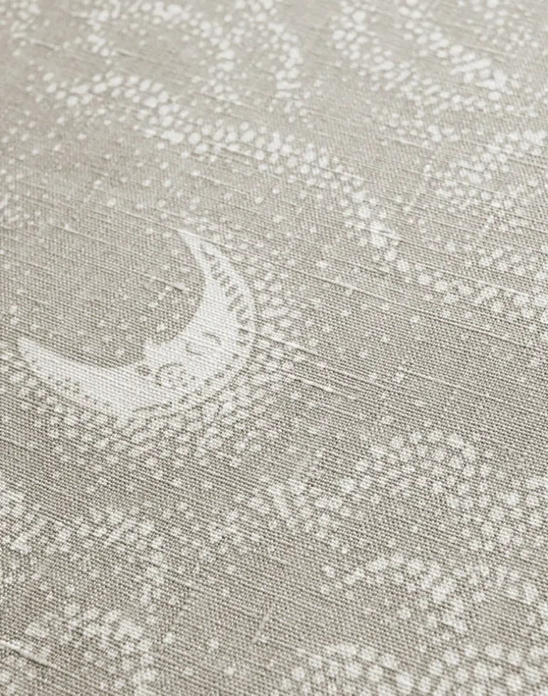 Every single dot, drawn by hand creates a lovely rhythm, and together with earthy colors and a beautiful surface aging with grace, this is a print giving a room harmony. Happy Cloud is by our Master printers on our beautiful and sustainable high quality linen weave, which is lively and make our patterns age with grace.