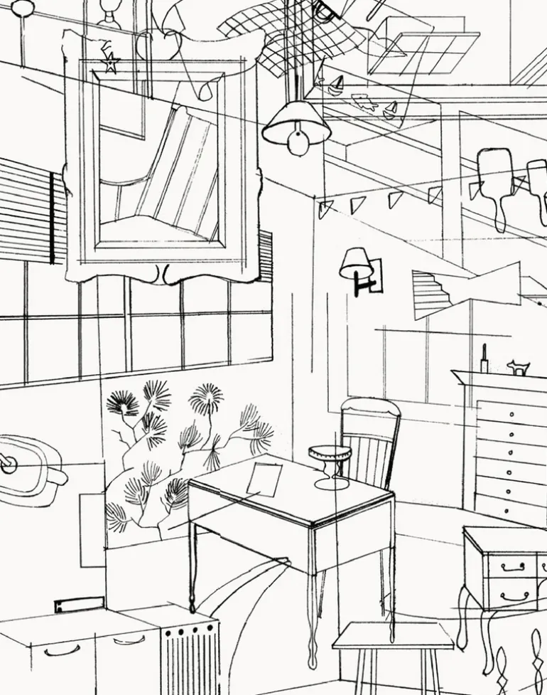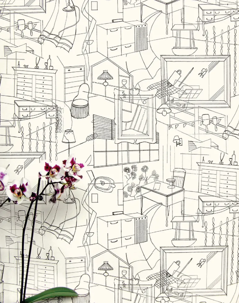 The winner of Elle Decoration’s Best Wallcovering in 2007, the popularity of Homes has continued thanks to its timeless, characterful design. Hand-drawn elements of mid-century American interiors are captured using soft black or brown lines, set against a cream background.