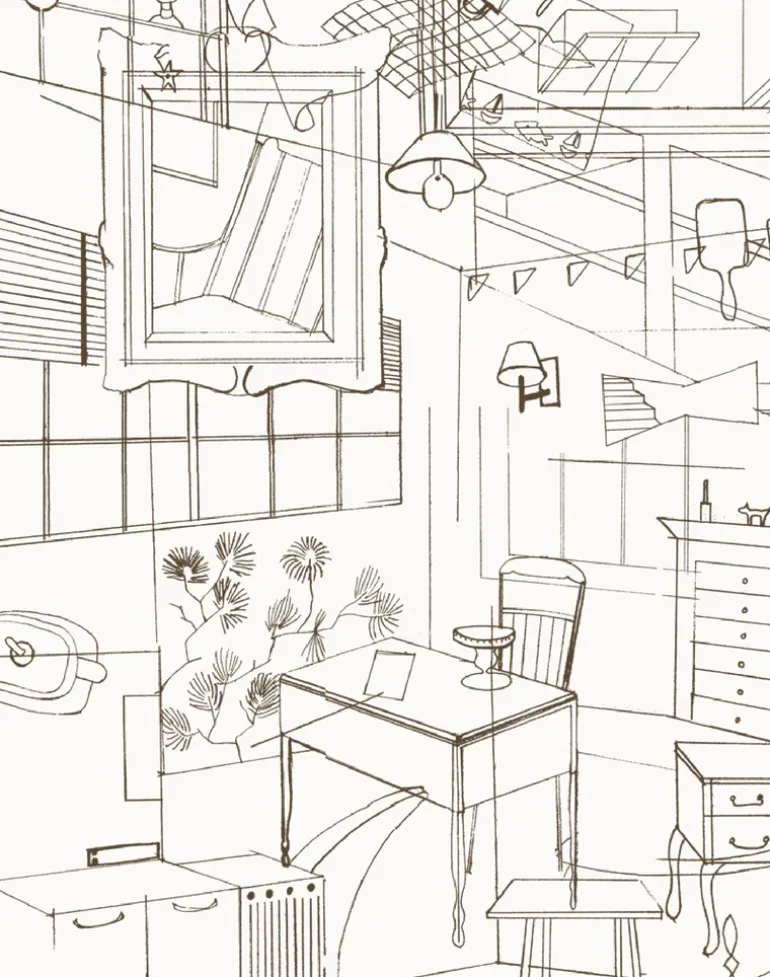 The winner of Elle Decoration’s Best Wallcovering in 2007, the popularity of Homes has continued thanks to its timeless, characterful design. Hand-drawn elements of mid-century American interiors are captured using soft black or brown lines, set against a cream background.